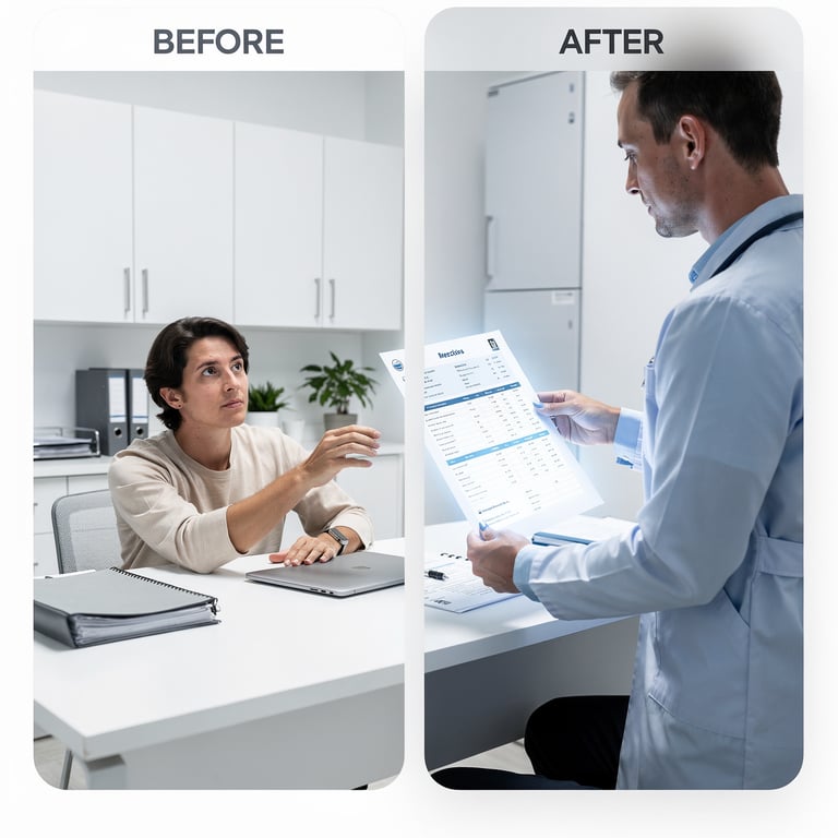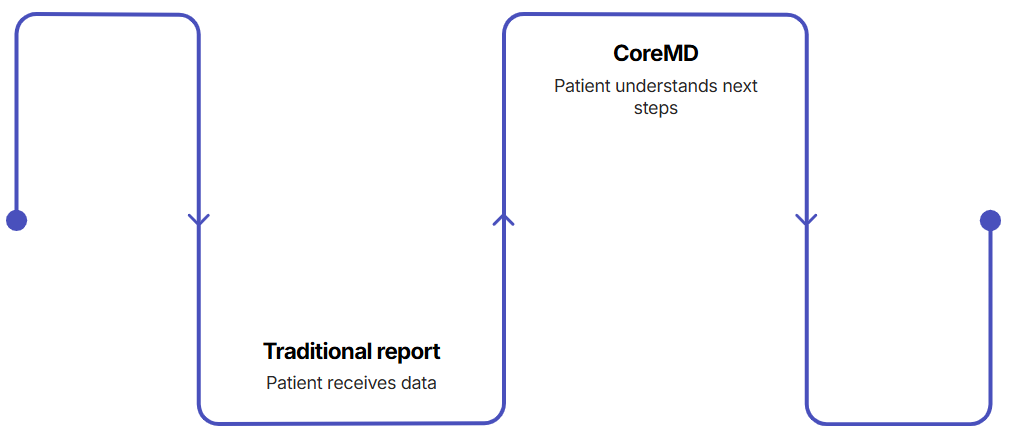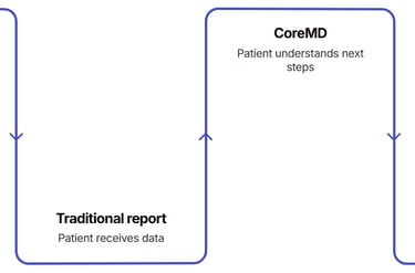 Traditional report: Patient receives data. CoreMD Insights: Patient understands their health trajectory and next steps.